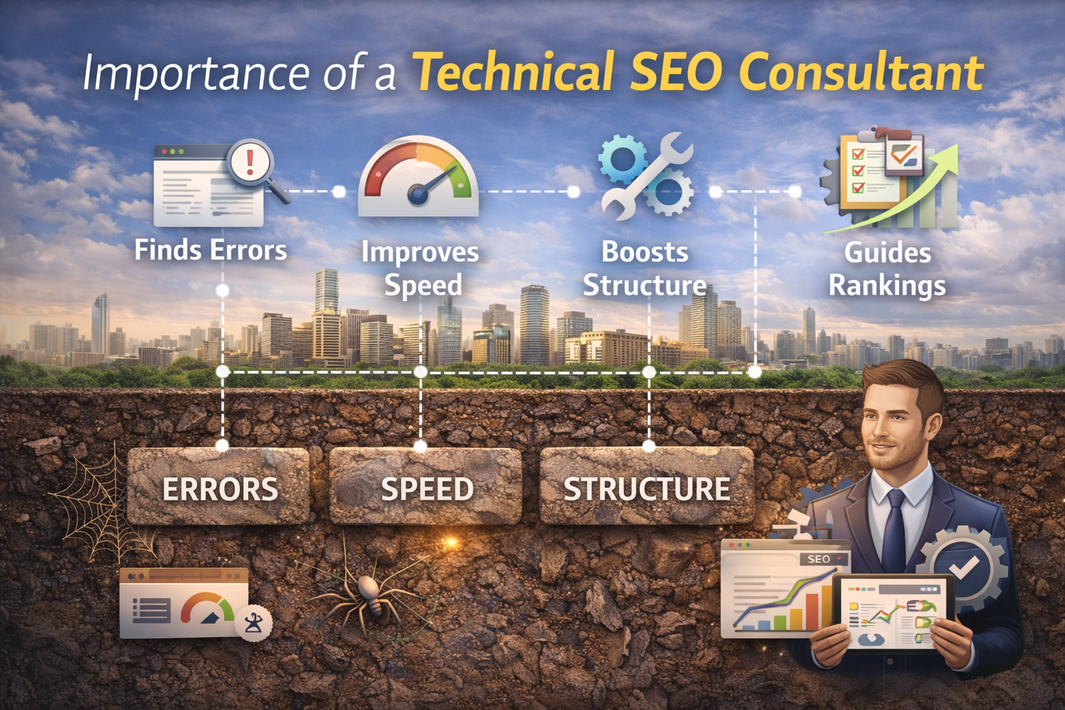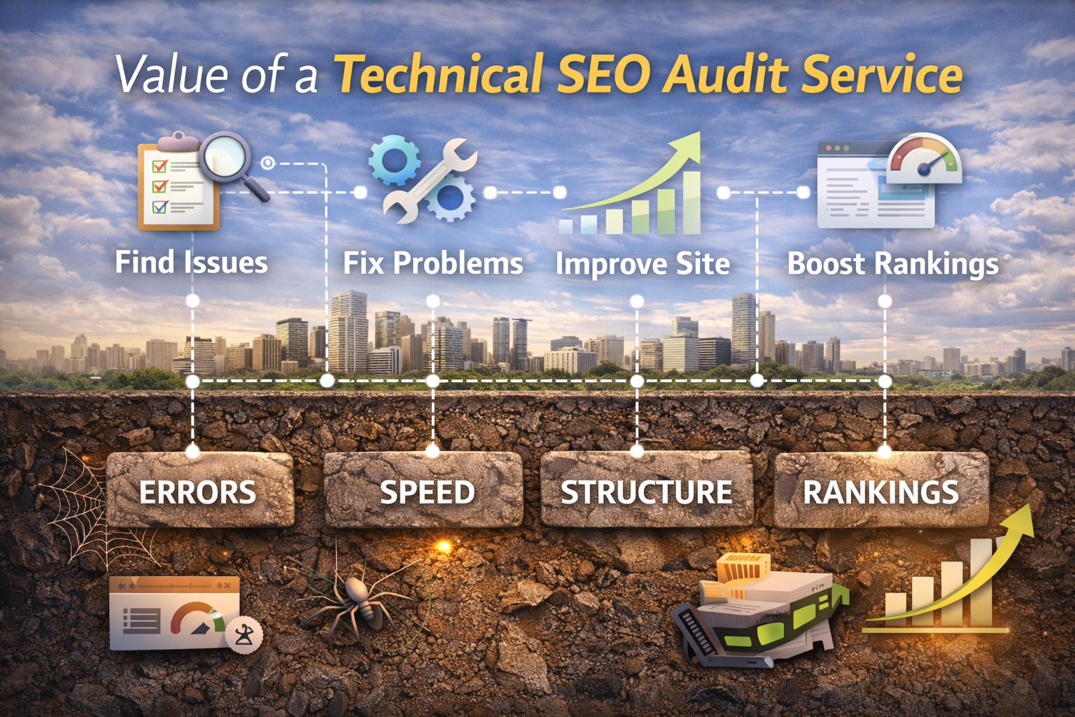 This involves optimization of site structure, index management, speed, and mobile accessibility. Once these elements work properly, the site becomes simpler to decipher and more trustworthy to the search engines.